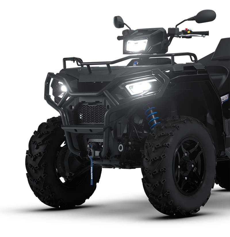 3 Modos de conducción: Estándar / Trabajo / Rendimiento, Enchufe de 12 voltios, puerto de carga lenta integrado, calentadores para manos y pulgares incluidos, sistema de seguridad activado por PIN (P.A.S.S.)., Cabrestante de 1,587 kgs con cuerda sintética y NUEVA función de parada automática, Protectores delanteros y traseros de los brazos en A, parachoques delantero trasero, extensor delantero del portaequipajes, rieles metálicos de la caja, plásticos pintados, protectores de manos.